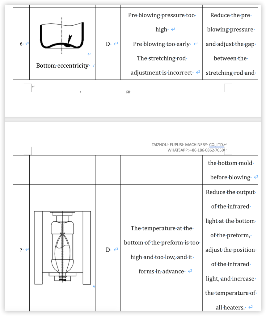Solução: Verifique se o servo do trilho da pré-forma está anormal e se o servo do trilho da pré-forma e a ação de empurrar a garrafa estão normais.